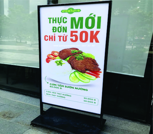 Vào thời điểm ban ngày, biển cửa hàng hộp đèn bạt hiflex cũng đóng vai trò giống như biển pano hiflex bình thường. Khi trời tối, chỉ cần cắm điện là biển hộp đèn sẽ tỏa sáng, đem lại những biển tam giác quảng cáo mạnh mẽ, giúp cho những cửa hàng, cửa hiệu thêm lung linh và nhiều sắc màu về đêm.