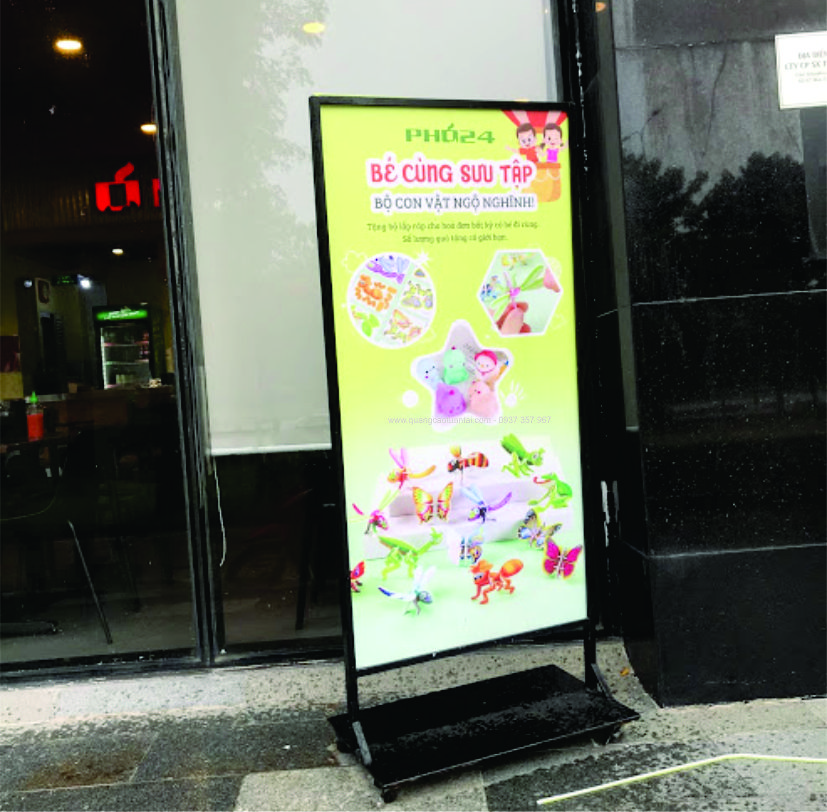 - Kích thước và hình dáng của biển hộp đèn hiflex cũng rất đa dạng. Những tấm biển nhỏ có thể được làm chân dựng trước cửa hàng, cửa hiệu và có thể di chuyển dễ dàng qua nhiều vị trí khác nhau.